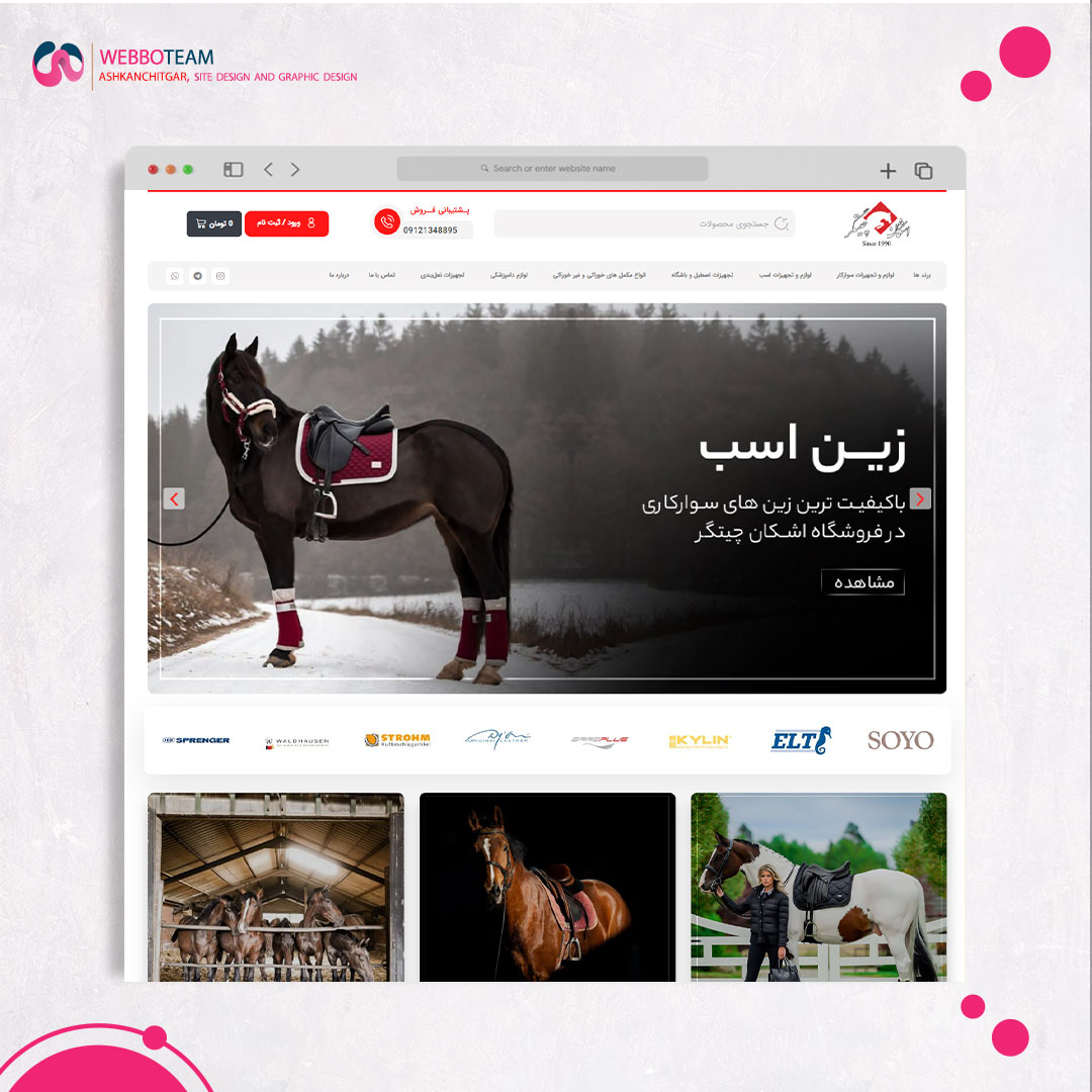 یک سایت حرفه ای و سبک در زمینه فروش لوازم سوارکاری طراحی شده براشون که قابلیت همچون: اطلاع رسانی آنی به کاربر در هر مرحله از پیگیری سفارش توسط تیم فروش اشکان چیتگر ، افزودن قابلیت چت واتساپ با تیم پشتیبانی ، طراحی کاملا اختصاصی هدر فوتر سایت ، طراحی اختصاصی صفحات سایت