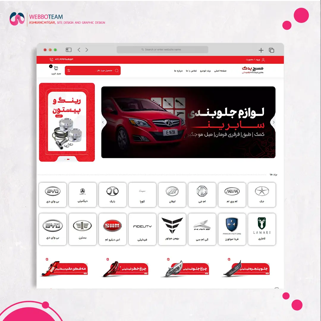 طراحی سایت مسیح یدک یکی از نمونه کار های دیگر مجموعه وب بو است که توسط تیم خلاق و حرفه ای وب بو خلق شده است در این سایت ما تمام تلاش خود را کرده ایم تا طبقه خواسته کارفرما و معیار های لازم یک سایت سبک و جذاب با سرعت لود بالا و همچنین سیستم خرید عالی طراحی کنیم . برای اطلاع رسانی به مشتریانمسیح یدک از سیستم ارسال اس ام اس استفاده کردیم و سعی کردیم با بهترین کیفیت سایت رو براشون طراحی کنیم سیستم های ورود و عضویت اختصاصی ، صفحه محصول و آرشیو محصولات اختصاصی ، فیلترینگ هوشمند محصولان ، صفحه سبد خرید و تسویه حساب اختصاصی همه این موارد جهت پیاده سازی سایت حرفه ای مسیح یدک به خوبی پیاده سازی شد